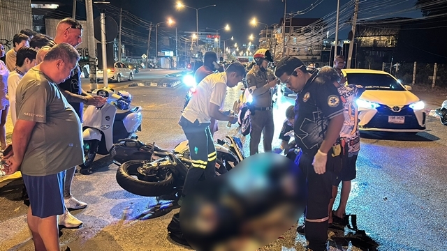 ที่เกิดเหตุ มีประชาชนยืนมุงดูเหตุการณ์ จำนวนมาก บนพื้นถนนพบร่าง นักท่องเที่ยวชาวต่างประเทศ ทราบชื่อ MR.CHI FAI LAM อายุประมาณ 48 ปี สัญชาติจีน ได้รับบาดเจ็บนอนแน่นิ่งอยู่กลางถนน เจ้าหน้าที่กู้ภัยฯ ปฐมพยาบาลเบื้องต้น โดยปั๊มหัวใจเพื่อยื้อชีวิตก่อนเคลื่อนย้ายส่งโรงพยาบาลอย่างเร่งด่วน ส่วนคู่กรณีเป็นรถสหกรณ์สองแถวได้หลบหนีไปก่อนที่เจ้าหน้าที่จะมาถึง