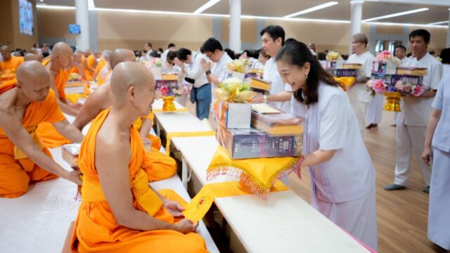 วัดพระธรรมกายจัดตักบาตรพระ-ถวายผ้าอาบน้ำฝน ประทีปโคมไฟ – เวียนเทียน สืบสานพุทธประเพณีอาสาฬหบูชาและเข้าพรรษา