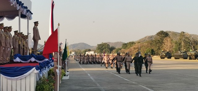 จัดกำลังพลหน่วยทหารเข้าร่วม 12 กองพัน มีผู้ร่วมสวนสนามจำนวน 1,804 นาย ทหารใหม่เข้าร่วมพิธีกระทำสัตย์ปฏิญาณตนจำนวน 258 นาย โดยในพิธีดังกล่าว ได้อาราธนาพระสงฆ์ทรงสมณศักดิ์ประพรมน้ำพระพุทธมนต์แก่กำลังพล