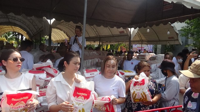 อ่างทอง-“จ๊ะ นงผณี” ทำบุญใหญ่ จัดงานไหว้ครู แจกข้าวสาร 5,000 ถุง