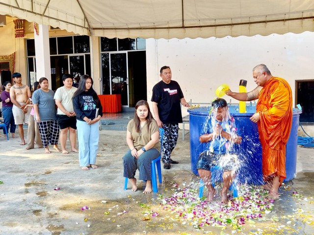 ปทุมธานี “คลื่นคนบุญแห่อาบน้ำมนต์ธรณีสารใหญ่” พระครูขันติธรรมรัต เจ้าอาวาส วัดตระพัง สามโคก กันอย่างคึกคัก