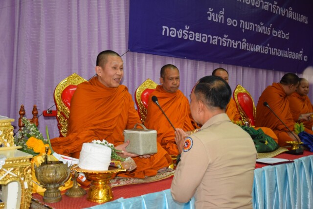 ณ.หอประชุมที่ว่าการอำเภอแม่สอด เขตเทศบาลนครแม่สอด นายกองตรีสัญญา เพชรเศษ นายอำเภอแม่สอด ผู้บังคับกองร้อยอาสารักษาดินแดนอำเภอแม่สอดที่3 เป็นประธานในพิธีทำบุญเนื่องในวันคล้ายวันสถาปนากองอาสารักษาดินแดน ครบรอบ 71 ปี ประจำปี พ.ศ. 2568 ในปีนี้ได้รับรางวัลชนะเลิศ กองร้อยรักษาดินแดน อ.แม่สอด ที่3 กองร้อยที่มีผลงานดีเด่นระดับอำเภอ ปี2567 โดยมี ผู้แทนสถานีตำรวจภูธรแม่สอด ผู้แทนกองร้อย ตชด.346 ผู้แทนทหารราชมนู หัวหน้าส่วนราชการ กำนัน และสมาชิกกองอาสารักษาดินแดน อ.แม่สอด ตลอดจนผู้เกี่ยวข้องเข้าร่วมพิธีฯ