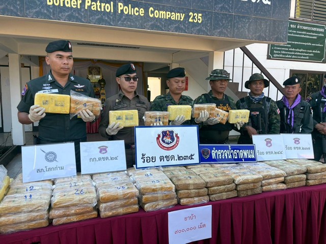 เมื่อวันที่ 11 กุมภาพันธ์ 2568 ที่ กองร้อยตำรวจตระเวนชายแดนที่ 235 (สอง-สาม-ห้า) อ.ธาตุพนม จ.นครพนม พ.ต.อ.วุทธยา สิงห์กิ้ง ผู้กำกับการตำรวจตระเวนชายแดนที่ 23 พร้อมด้วย ร.ต.อ.สมควร เบญจมาตร รักษาการแทนผู้บังคับกองร้อยตำรวจตระเวนชายแดนที่ 235 ธาตุพนม ได้แถลงข่าวตรวจยึดยาบ้ากว่า 900,000 เม็ด ในพื้นที่ อ.เซกา จ.บึงกาฬ