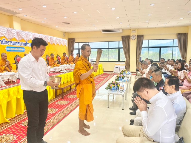 ตราด-บรรยากาศการทําบุญตักบาตรเปิดอาคารสำนักงานเทศบาลตำบลคลองใหญ่(หลังใหม่)