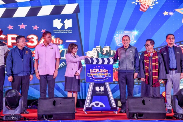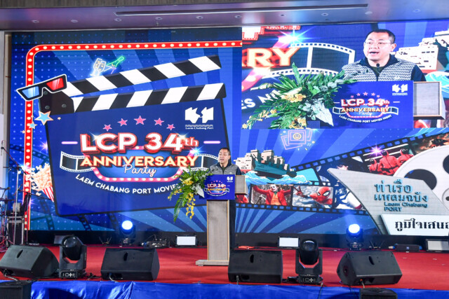 ค่ำวันที่ 11 ก.พ.68 ที่โรงแรมแกรนด์ พาลาสโซ่ พัทยา จ.ชลบุรี นายธวัชชัย ศรีทอง ผู้ว่าราชการจังหวัดชลบุรี กล่าวต้อนรับและร่วมเป็นเกียรติในพิธีเปิดงานวันคล้ายวันสถาปนาท่าเรือแหลมฉบัง ครบรอบ 34 ปี LCP 34th Anniversary Party : Laem Chabang Port Movies Night โดยมี ดร.มนพร เจริญศรี รัฐมนตรีช่วยว่าการกระทรวงคมนาคม เป็นประธานในพิธีฯ