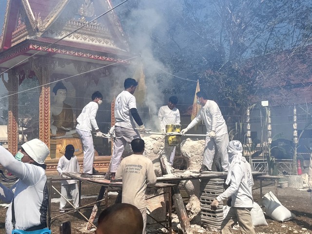 วันที่ 12 กพ 2568 เวลา 09.00 น ณ มณฑลพิธีเททอง วัดคลองท่อม ต.คลองท่อมใต้ อ.คลองท่อม จ.กระบี่ ระหว่างวันที่ ๘ – ๑๒ กุมภาพันธ์ ๒๕๖๘ โดยมีพระครูสถิตนราธิการ เจ้าอาวาสวัดคลองท่อม นายไพศาล ศรีเทพ นายอำเภอคลองท่อม ประธานฝ่ายฆราวาส พล.ต.ท.สมชาย นิตยบวรกุล นายพิริยะ ศรีสุขสมวงศ์ นายกเทศมนตรีเทศบาลตำบลคลองท่อมใต้ สื่อมวลชน เจ้าพิธี จุดธูปเทียนหน้าเครื่องบางสรวง บอกกล่าวเทวดา ฟ้าดิน ครูอารย์ และสิ่งศักดิ์สิทธิ์ประจำวัดคลองท่อม และ นายไพศาล ศรีเทพ นายอำเภอคลองท่อม เจ้าภาพฝ่ายฆราวาส ได้จุดเทียนพระพุทธ พุทธบริษัทพร้อมกัน การประกอบพิธีงาน ปักธูปหางโปรยข้าวตอกดอกไม้ บูชาเครื่องสังเวยผู้ร่วมพิธีร่วมกันปักธูปหางที่เครื่องสังเวยบูชา โปรยข้าวตอกดอกไม้ และประธานในพิธี จุดธูปเทียนบูชาพระรัตนตรัย