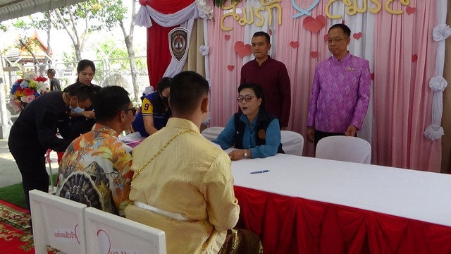 เมื่อเวลา 09.05 น.ของวันนี้(14 กพ.68)ที่เรือนจำจังหวัดอ่างทอง อำเภอเมือง จังหวัดอ่างทอง นายทัศนัย สุธาพจน์ รองผู้ว่าราชการจังหวัดอ่างทอง เป็นประธานเปิด”โครงการสมรัก-สมรส สำหรับผู้ต้องขัง”โดยมีผู้ต้องขังเข้าร่วมจดทะเบียนสมรสจำนวน 10 คู่ 20 คน โดยมี 1 คู่ที่เป็นเพศชายคู่รัก LGBTQ ร่วมจดทะเบียนด้วย