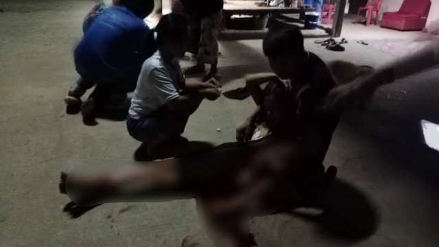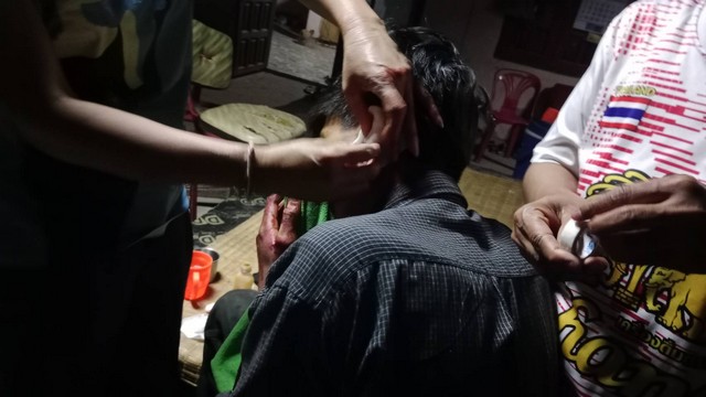 เมื่อไปถึงที่เกิดเหตุซึ่งเป็นบริเวณหน้าบ้านเลขที่ 82 บ้านห้วยตูม หมู่ที่ 12 ต.กลางหมื่น อ.เมือง จ.กาฬสินธุ์ พบผู้ได้รับบาดเจ็บนอนเลือดอาบกระจายอยู่หลายจุด จำนวน 4 ราย ประกอบด้วย น.ส.นันทิดา (นามสมมุติ)อายุ 44 ปี ถูกแทงบริเวณราวนมด้านซ้าย มีเลือดไหลออกมามากบาดเจ็บสาหัส นายเจริญ แน่นอุดร อายุ 67 ปี บิดาของ น.ส.นันทิดา ได้รับบาดเจ็บบริเวณท้ายทอยและใบหน้ามีรอยฟกช้ำ นายรัฐศาสตร์(นามสมมุติ) อายุ 17 ปี หลาน บาดเจ็บบริเวณหูข้างซ้ายถูกของมีคมบาด และ น.ส.กาญจนา (นามสมมุติ) อายุ 38 ปี บาดเจ็บที่ศีรษะมีเลือดไหลออกมา