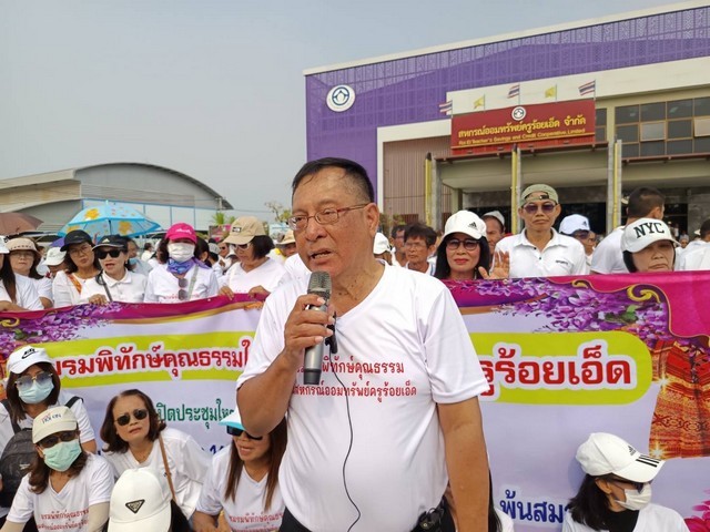 วันนี้(17 ก.พ.68) เวลา 09.00 น. นายพีระพงศ์ สุรเสน ประธานชมรมพิทักษ์คุณธรรมในสหกรณ์ออมทรัพย์ครูร้อยเอ็ด พร้อมคณะ แกนนำสมาชิกสหกรณ์ออมทรัพย์ครูร้อยเอ็ด จัดกิจกรรมชุมนุมในนามชมรมพิทักษ์คุณธรรมในสหกรณ์ออมทรัพย์ครูร้อยเอ็ด ประมาณ 1000 คน จากสมาชิกสหกรณ์ฯทั้งหมดกว่า 18,000 คน ใส่เสื้อขาวร่วมชุมนุมประท้วงยื่นถอดถอนกรรมการสหกรณ์ออมทรัพย์ครูร้อยเอ็ด จำกัด ทั้ง 14 คน ให้พ้นจากตำแหน่ง ณ หน้าอาคารที่ทำการสหกรณ์ออมทรัพย์ครูร้อยเอ็ดแห่งใหม่ ริมถนนบายพาส อาจสามารถ-ธวัชบุรี เพื่อรวบรามรายชื่อสมาชิกสหกรณ์ในการขอถอดถอนกรรมการสหกรณ์ออมทรัพย์ครูร้อยเอ็ด จำกัด ทั้ง 14 คน ให้พ้นจากตำแหน่ง เนื่องจากการดำเนินงานอันขาดคุณธรรม โดยไม่เล็งเห็นสิทธิประโยชน์ส่วนรวมของมวลสมาชิก อยู่ 2 ประเด็นหลักสำคัญ