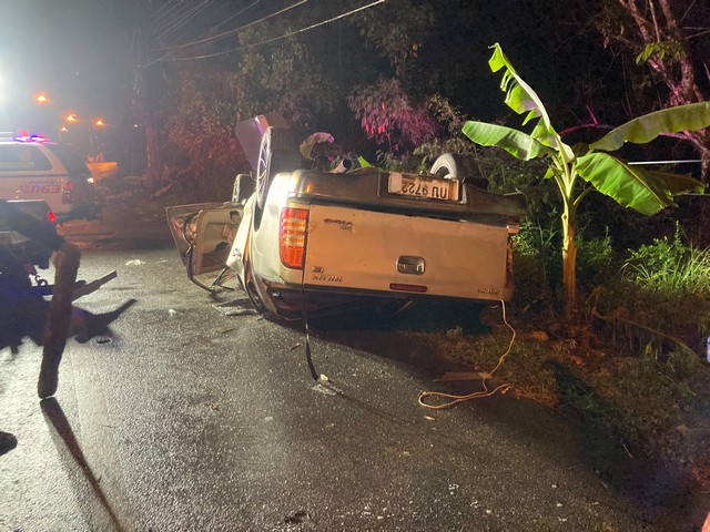 จากการสอบถามทราบว่าช่วงเวลาประมาณ 01.30 น. ผู้บาดเจ็บได้ขับขี่รถกระบะเพื่อเดินทางกลับบ้านพักเมื่อมาถึงที่เกิดเหตุ รถเกิดเสียหลักพุ่งชนเสาไฟฟ้าริมทางเข้าอย่างจังรถพลิกคว่ำจนทำให้มีผู้บาดเจ็บสาหัส ดังกล่าว เบื้องต้นคาดว่า คนขับน่าจะเกิดอาการหลับใน