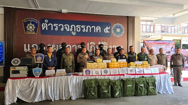 ฝ่ายทหาร นบ.ยส.35 โดย พล.ท.กิตติพงศ์ ชื่นใจชน มทน.3/ผบ.นบ.ยส.35 ฝ่ายปกครอง โดย นายนายนิรัตน์ พงษ์สิทธิถาวร ผวจ.เชียงใหม่ นายชุติเดช มีจันทร์ ผวจ.ลำปาง สำนักงาน ปปส.ภาค 5 โดย นายธันวา ผุดผ่อง ผอ.ปปส.ภาค 5 แถลงผลการสืบสวนจับกุมผู้ต้องหาคดียาเสพติดรายสำคัญ จำนวน 2 คดี