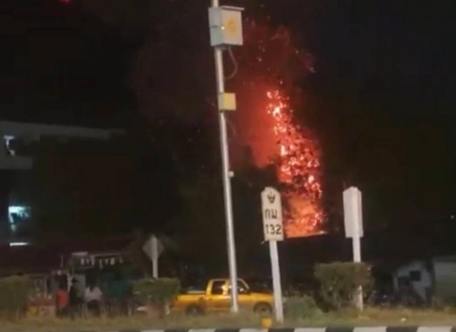 จากการสอบถามนายหนุ่ม เจ้าของร้านก๋วยเตี๋ยวที่อยู่ข้างร้านซ่อมมอเตอร์ไซด์ซึ่งอยู่บริเวณที่เกิดเหตุขณะเกิดเหตุเล่าว่า ตอนนั้นตนได้ยินเสียงระเบิดดังขึ้นจากหลังร้านของตนหลายครั้งก่อนที่จะเกิดประกายไฟขึ้นและลุกลามมายังร้านซ่อมมอเตอร์ไซส์ ซึ่งจุดที่คาดว่าเป็นต้นเพลิงมาจากร้านซ่อมรองเท้า