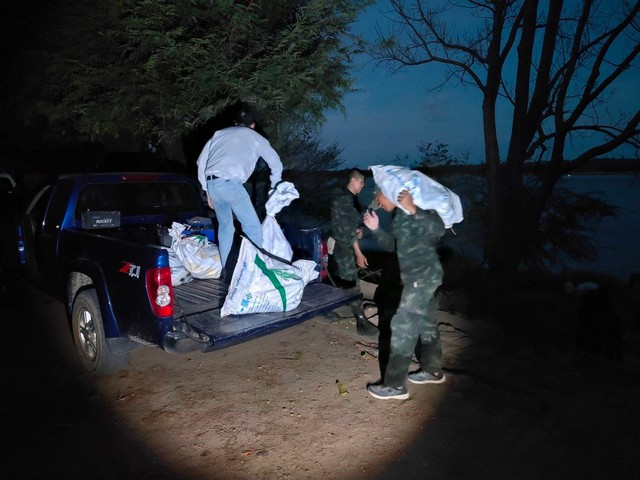 เมื่อวันที่ 23 กุมภาพันธ์ 2568 ที่ผ่านมา กองร้อยหมวดสกัดกั้นฯที่ 1 กองกำลังสุรศักดิ์มนตรี ได้รับแจ้งจากแหล่งข่าวว่า จะมีการลักลอบขนสินค้าผ่านช่องทางธรรมชาติข้ามมายังฝั่งประเทศไทย จึงรายงานให้ผู้บังคับบัญชาทราบ และวางแผนทำการจับกุมร่วมกับกองร้อยทหารราบ และกองร้อยเฉพาะกิจทหารพรานที่ 2105 ออกตรวจในพื้นที่ หมู่ 2 บ.หว้านน้อย ต.หว้านใหญ่ อ.หว้านใหญ่ จ.มุกดาหาร พบเรือกีบเหล็กติดเครื่องยนต์แล่นจากฝั่ง สปป.ลาว เข้ามายังท่าน้ำฝั่งประเทศไทย และมองเห็นวัตถุต้องสงสัยเป็นกระสอบสีขาวจำนวนหลายใบอยู่ในเรือ