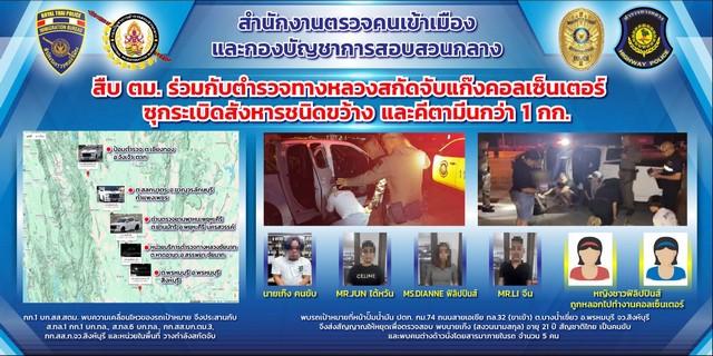 โดยในจำนวนนี้มีการจับกุมรายสำคัญหลายราย อาทิ การสกัดจับแก๊งคอลเซ็นเตอร์ซุกระเบิดสังหารชนิดขว้างและคีตามีน กว่า 1 กิโลกรัม และยาเสพติดชนิดอื่นๆ อีกจำนวนหนึ่ง ซึ่งเป็นปฏิบัติการร่วมระหว่างตำรวจตรวจคนเข้าเมือง ตำรวจสอบสวนกลาง และตำรวจท่องเที่ยว จับกุมผู้ต้องหา จำนวน 4 ราย เป็นสัญชาติไทย ไต้หวัน และ ฟิลิปปินส์ จากการตรวจสอบพบว่าผู้ต้องหาชาวไต้หวันที่ถูกจับกุม เป็นบุคคลที่ทางการไต้หวันได้ออกหมายจับ จำนวน 5 คดี และชาวฟิลิปปินส์ จำนวน 2 คน เชื่อว่าน่าจะถูกหลอกลวงไปทำงานแก๊งคอลเซ็นเตอร์ ในประเทศเมียนมา เจ้าหน้าที่ชุดจับกุมจึงได้ร่วมกับเจ้าหน้าที่พัฒนาสังคมและความมั่นคงของมนุษย์จังหวัดสิงห์บุรี คัดกรองเพื่อหาข้อบ่งชี้จากการค้ามนุษย์ตามกลไกส่งต่อระดับชาติ (NRM)