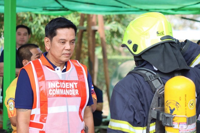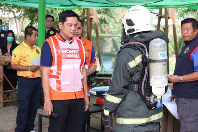 สมุทรปราการ-EEP Group จำลองเหตุการณ์ซ้อมดับเพลิงไฟใหม้บ่อขยะและการอพยพผู้ได้รับผลกระทบแบบบูรณาการระดับจังหวัด