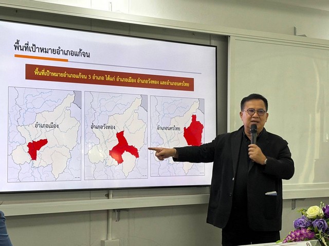 แบบเบ็ดเสร็จและแม่นยำภาคเหนือตอนล่าง: กรณีศึกษาจังหวัดพิษณุโลก ระยะที่ 2 ปีที่ 2 พร้อมทีมวิจัย แถลงข่าวถึงการทำงานวิจัยเรื่องนี้ว่า จัดทำขึ้นเพื่อพัฒนาและยกระดับในหลายด้าน อาทิ กลไกความร่วมมือการแก้ไข