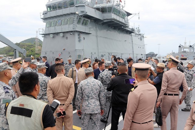 โดยมี พลเรือเอก ณัฐพล เดี่ยววานิช ผู้บัญชาการกองเรือยุทธการ คณะผู้บังบัญชาระดับสูง นายทหารชั้นผู้ใหญ่ร่วมให้การต้อนรับ