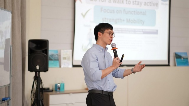 • ด้านกิจกรรมทางกาย: ฝึกปฏิบัติการออกกำลังกายเพื่อเสริมสร้างสมดุลและความยืดหยุ่น (Functional Balance and Flexibility Exercise) รวมถึงโยคะและไทชิยามเช้า