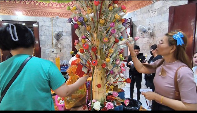 นครนายก – โค้งสุดท้ายนักท่องเที่ยวเข้ากราบไหว้องค์หลวงพ่อปากแดงพร้อมขอพร โชคลาภ ธุรกิจ หน้าที่การงาน พร้อมส่องเลขเด็ดในอ่างน้ำมนต์ ใกล้วันหวยออก
