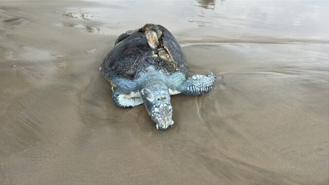 ชุมพร – พบซากเต่าตนุโตเต็มวัย เกยตื้นชายหาดทุ่งวัวแล่น บริเวณหน้ารูปปั้นวัวกระทิง
