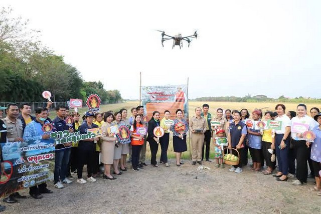สุดท้าย ผู้ว่าราชการจังหวัดปทุมธานี ลงพื้นที่แปลงนาข้าว ของนางสีนวน งามสะอาด ผู้ใหญ่บ้านหมู่ที่ 2 ตำบลระแหง อำเภอลาดหลุมแก้ว เข้าร่วมกิจกรรมรณรงค์หยุดเผาในพื้นที่การเกษตร เชิญชวนให้ชาวนาหันมาใช้จุลินทรีย์ย่อยสลายตอซังและฟางข้าวทดแทนการเผา ซึ่งมีการนำเทคโนโลยีมาใช้เพิ่มเติม ด้วยการใช้โดรนการเกษตรบินฉีดพ่นจุลินทรีย์ ก่อนจะหมักทิ้งไว้ 5 – 7 วัน เพื่อให้ตอซังและฟางข้าวย่อยสลายต่อไป