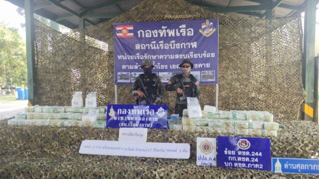 เมื่อเวลา 14.00 น.วันที่ 4 มีงคง ที่หน่วยเรือรักษาความสงบเรียบร้อยตามลำแม่น้ำโขงเขตหนองคาย สถานีเรือบึงกาฬ ต.วิศิษฐ์ อ.เมืองบึงกาฬ จ.บึงกาฬ ตามนโยบายของรัฐบาล และ พล.ร.อ.จิรพล ว่องวิทย์ ผู้บัญชาการทหารเรือ ในการป้องกันและปราบปรามยาเสพติดนั้น พล.ร.ต.ณรงค์ เอมดี ผบ.นรข. นายวรพันธ์ ชำนิยันต์ ปลัดจังหวัดบึงกาฬ เป็นประธานร่วมแถลงข่าวการตรวจยึดยาเสพติดให้โทษประเภท 1 (ยาไอซ์) จำนวน 117 กิโลกรัม พร้อมผู้ต้อง 2 ราย ของกลางยาไอซ์ รถกระบะ 1 คัน พร้อมด้วย น.อ.วิศิษฐ์พงศ์ เจริญวิชยเดช ผบ.นรข.เขตหนองคาย น.ท.โอรส พุทธโค หน.สน.เรือบึงกาฬ หัวหน้าหน่วยงานความมั่นคงในพื้นที่ประกอบไปด้วย พ.อ.พิชัย ขันโททอง หน.ฝนผ.กอ.รมน.จังหวัดบึงกาฬ นายธีรพล ขุนพานเพิง นายอำเภอเมืองบึงกาฬ ว่าที่พ.ต.อ.จตุพร เนวะมาตย์ ผกก.ตม.บึงกาฬ เจ้าหน้าที่พิสูจน์หลักฐานจังหวัดบึงกาฬ ผู้แทนตำรวจตชด.244 พ.ต.ต.ประชานารถ แดงเนียม สว.หน.ตำรวจน้ำบึงกาฬ นายกรณ์ชัย ปัญญาวัฒนพงศ์ นายด่านศุลกากรบึงกาฬ ผู้แทน ป.ป.ส.ภาค 4 ผู้แทนกองกำลังสุรศักดิ์มนตรี และผู้แทน บก.อส.จ.บึงกาฬ ร่วมแถลงข่าวในครั้งนี้