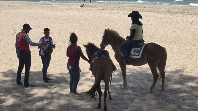 ม้าคาวบอย ม้าชายหาดสมิหลาสงขลา คิดค่าบริการคนละ 150 บาท นั่งจากบริเวณนางเงือกไปจนถึงรูปปั้นหนูแมว และกลับมาที่เดิม ระยะทางไปกลับประมาณ 500 เมตร