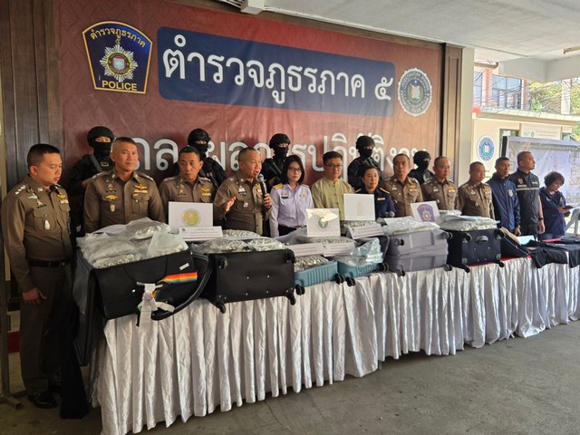 เชียงใหม่-ตำรวจภูธรภาค 5 แถลงข่าวการจับกุมชาวต่างชาติ ลักลอบส่งออกกัญชา น้ำหนักรวมกว่า 100 กิโลกรัม