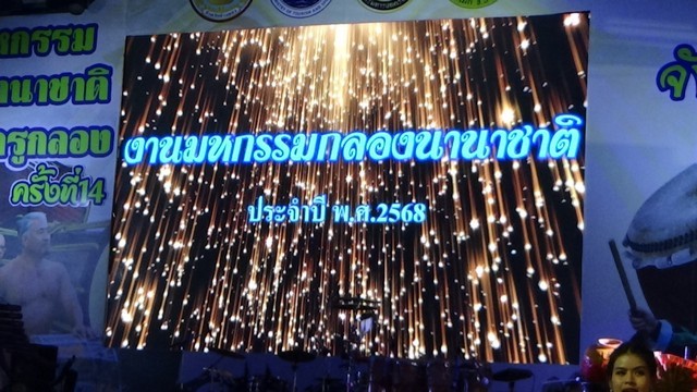 ต่อมาเมื่อเวลา 19.30 น.ขบวนรถยนต์บรรทุกกลองนานาชนิด เดินทางมาถึงบริเวณอาคารบริการนักท่องเที่ยว หมู่บ้านทำกลอง ตำบลเอกราช นายชวนินทร์ วงศ์สถิตจิรกาล ผู้ว่าราชการจังหวัดอ่างทอง เป็นประธานในพิธีเปิด งานมหกรรมกลองนานาชาติและพิธีไหว้ครูกลอง (ครั้งที่ 14) ประจำปี 2568 พร้อมด้วยนางศุทธิกานต์ วงศ์สถิตจิรกาล นายกเหล่ากาชาดจังหวัดอ่างทอง หัวหน้าส่วนราชการ นายอำเภอป่าโมก ผู้กำกับการสถานีตำรวจภูธรอำเภอป่าโมก นายกองค์การบริหารส่วนตำบลเอกราช และสมาชิกกลุ่มทำกลองเอกราช