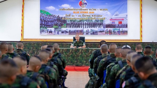 พล.ร.ต.โยธิน ธนะมูล ผู้บัญชาการกองพลนาวิกโยธิน หน่วยบัญชาการนาวิกโยธิน (ผบ.พล.นย.) เป็นประธานในพิธีเปิดการฝึกเตรียมก่อนการฝึกผสม กองทัพเรือไทย-กองทัพเรือสาธารณรัฐ ประชาชนจีน (ทร.ไทย – ทร.สปจ.) “BLUE STRIKE 2025” ณ ค่ายพระมหาเจษฎาราชเจ้า กองพลนาวิกโยธิน อ.สัตหีบ จ.ชลบุรี