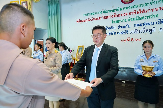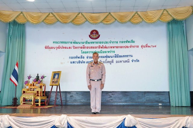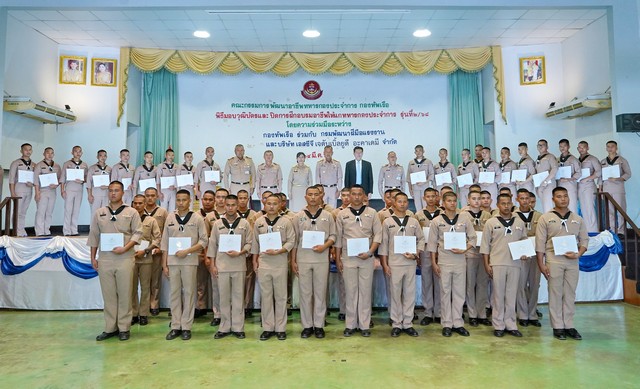 วันที่ 14 มี.ค.68 พลเรือเอก วิจิตร ตันประภา ประธานคณะกรรมการพัฒนาอาชีพทหารกองประจำการกองทัพเรือ (คพท.) เป็นประธานในพิธีปิดหลักสูตรการฝึกอาชีพ ให้แก่ทหารกองประจำการ รุ่นที่ 2 ประจำปีงบประมาณ 2568 โดยมีผู้แทนหน่วยงานที่เกี่ยวข้อง ร่วมมอบวุฒิบัตรและแสดงความยินดีกับผู้ที่สำเร็จหลักสูตร ณ สโมสรสัญญาบัตร ฐานทัพเรือสัตหีบ อ.สัตหีบ จ.ชลบุรี