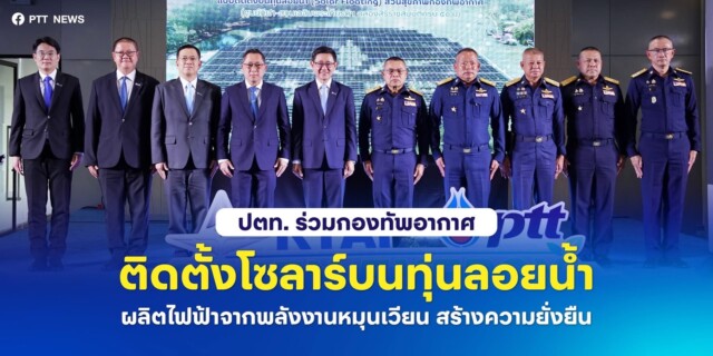 ปตท. ผนึกกำลังกองทัพอากาศ ติดตั้งโซลาร์บนทุ่นลอยน้ำ สร้างพลังงานหมุนเวียน ตอกย้ำความมุ่งมั่นสู่ความยั่งยืน