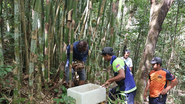 โดยได้นำกล่องโฟม รองพื้นด้วยใบไม้ไผ่ จากนั้นก็ค่อยๆใช้มือขุดบริเวณรอบๆรัง ด้วยความระมัดระวังไม่ให้ไข่งูแตก และทำการยกรังพร้อมไข่ทั้งหมด มาใส่ไว้ในกล่องที่เตรียมไว้ ซึ่งนับจำนวนไข่ได้ทั้งหมด 37 ฟอง จากนั้นก็เคลื่อนย้ายไปวางไว้ในป่า ในพื้นที่ซึ่งเหมาะสม ห่างไกลจากผู้คนและบ้านเรือนชาวบ้าน ส่วนแม่งูก็จะนำไปปล่อยคืนสู่ป่าธรรมชาติเช่นกัน