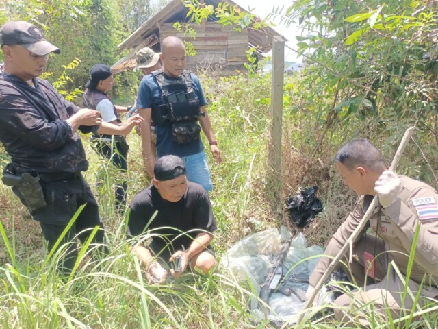 นอกจากนั้นเจ้าหน้าที่ตำรวจยังสามารถตรวจยึด อาวุธปืนเล็กยาว HK 33 จำนวน 1 กระบอก ซองบรรจุกระสุนปืนเอสเค ขนาดบรรจุ 20 นัด จำนวน 1 ซอง มีเครื่องกระสุนปืนขนาด 5.56 มม. จำนวน 5 นัด บรรจุอยู่ในซองบรรจุกระสุนปืน และซองบรรจุกระสุนปืนเอ็ม 16 ขนาดบรรจุ 30 นัด จำนวน ๑ ซอง มีเครื่องกระสุนปืนขนาด 5.56 มม. จำนวน 24 นัด บรรจุอยู่ในซองบรรจุกระสุนปืนห่อด้วยพลาสติกสีดำ แล้วห่อด้วยทับพลาสติกสีขาว ก่อนจะห่อด้วยพล่าสติกสีดำอีกชั้น มัดด้วยเชือกฟาง ซุกซ่อนอยู่ที่พื้นดินข้างเสาปูนโดยมีหญ้าแห้งปิดทับไว้ พบหลังห่างจากขนำประมาณ 6 เมตร