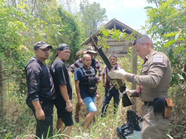 นอกจากนั้นเจ้าหน้าที่ตำรวจยังสามารถตรวจยึด อาวุธปืนเล็กยาว HK 33 จำนวน 1 กระบอก ซองบรรจุกระสุนปืนเอสเค ขนาดบรรจุ 20 นัด จำนวน 1 ซอง มีเครื่องกระสุนปืนขนาด 5.56 มม. จำนวน 5 นัด บรรจุอยู่ในซองบรรจุกระสุนปืน และซองบรรจุกระสุนปืนเอ็ม 16 ขนาดบรรจุ 30 นัด จำนวน ๑ ซอง มีเครื่องกระสุนปืนขนาด 5.56 มม. จำนวน 24 นัด บรรจุอยู่ในซองบรรจุกระสุนปืนห่อด้วยพลาสติกสีดำ แล้วห่อด้วยทับพลาสติกสีขาว ก่อนจะห่อด้วยพล่าสติกสีดำอีกชั้น มัดด้วยเชือกฟาง ซุกซ่อนอยู่ที่พื้นดินข้างเสาปูนโดยมีหญ้าแห้งปิดทับไว้ พบหลังห่างจากขนำประมาณ 6 เมตร