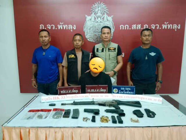 พัทลุง-เจ้าหน้าที่ตำรวจชุดปราบปรามยาเสพติด จังหวัดพัทลุงจับผู้ต้องหาพร้อมอาวุธปืนสงคราม