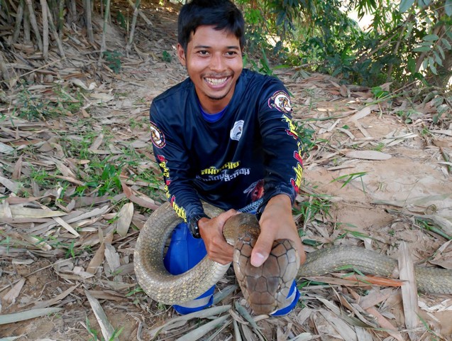 ชาวบ้านผวา จงอางยักษ์ขดตัวกอไผ่หลังบ้าน ไม่กล้าอาบน้ำ วอนทีมปราบอสรพิษ อาสาพิทักษ์งู สงขลา ช่วยจับ