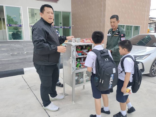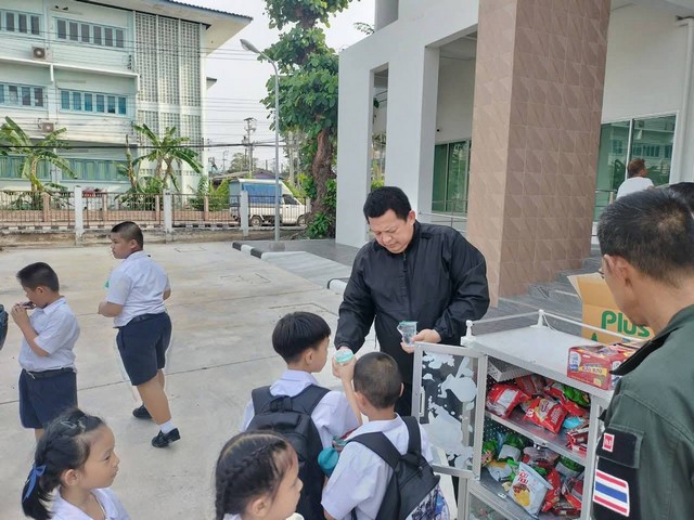 นครนายก – ตำรวจสืบจังหวัดนครนายก ทำดีด้วยใจจัดตู้ปั่นสุขแจกขนมและน้ำดื่มให้เด็กนักเรียนที่รอผู้ปกครองมารับอย่างมีความสุข