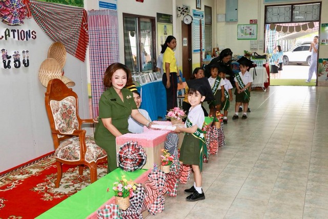 วันที่ 20 มีนาคม 2567 เวลา 09.00 นาฬิกา ที่ ศูนย์พัฒนาเด็กเล็กธารีฉัตร ค่ายสมเด็จพระนเรศวรมหาราช อำเภอเมือง จังหวัดพิษณุโลก พันเอกหญิง สุชาดา แจ่มสุวรรณ ประธานสมาคมแม่บ้านทหารบก สาขากองทัพภาคที่ 3 เป็นประธานพิธีมอบวุฒิบัตรแก่ “บัณฑิตน้อย” ที่สำเร็จการศึกษา เพื่อสร้างขวัญกำลังใจให้นักเรียนได้เกิดความภาคภูมิใจ และปลูกฝังความสำเร็จอีกหนึ่งขั้นตั้งแต่วัยเยาว์ มุ่งสู่การศึกษาระดับชั้นที่สูงขึ้นต่อไป ท่ามกลางความภาคภูมิใจของคณะครูและผู้ปกครอง