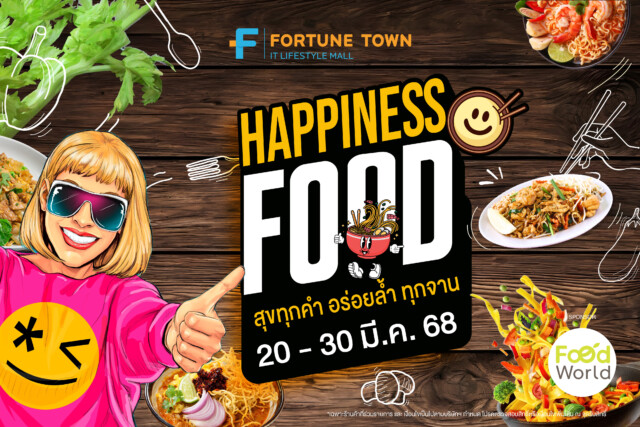 สายกินต้องไม่พลาด กับ ““Happiness Food” สุขทุกคำอร่อยล้ำทุกจาน ตั้งแต่วันที่ 20-30 มีนาคม 2568 ฟอร์จูนทาวน์ รัชดา-พระราม 9 เดินทางสะดวกด้วยรถไฟฟ้า MRT สถานีพระราม 9 ทางออกประตู 1