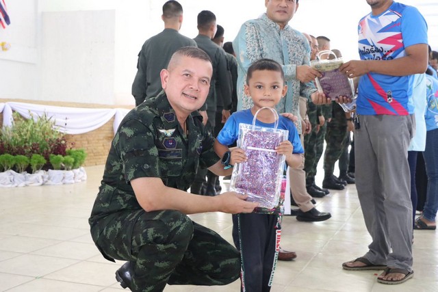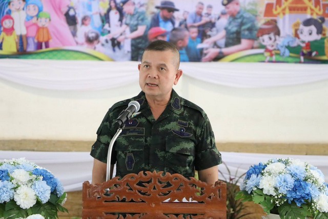 โอกาสนี้ รองแม่ทัพภาคที่ 4 กล่าวว่า วันนี้ได้มาพบปะเยี่ยมเยียนพี่น้องประชาชนรวมไปถึงเยาวชนของหมู่บ้านเศรษฐกิจพอเพียงและฟาร์มตัวอย่างบ้านรอตันบาตู เป็นสัปดาห์สุดท้ายของการปฏิบัติศาสนกิจของพี่น้องชาวไทยมุสลิม ในห้วงเดือนรอมฎอน ได้มีโอกาสไปร่วมพบปะกับผู้นำศาสนาและพี่น้องประชาชนถือเป็นโอกาสที่ดีที่ที่ได้มาร่วมมอบชุดรายอให้กับเยาวชน และประชาชนมุสลิมที่ได้รับผลกระทบฯ เพื่อเตรียมการฉลองวันตรุษอีฎิ้ลฟิตรี (เทศกาลฮารีรายอ) ที่ใกล้จะมาถึงและถือโอกาสมอบชุดสงกรานต์ให้กับเยาวชนและประชาชนไทยพุทธ เพื่อสืบสานประเพณีสงกรานต์อย่างพร้อมเพรียงกันและมาให้กำลังใจบุคลากรทุกคนของมูลนิธิสตรีผู้ได้รับผลกระทบฯ ที่ได้ช่วยประสานงาน ดูแลเยาวชนและประชาชนในความรับผิดชอบตั้งแต่เกิดเหตุการณ์ความไม่สงบ ให้ความรัก ความอบอุ่น เป็นครอบครัวบุญธรรมให้กับเยาวชนและส่งเสริมการศึกษาทั้งสายสามัญ และศาสนา แก่เยาวชนเหล่านี้ ผมคาดหวังว่าน้องๆ เยาวชน จะตั้งใจศึกษาเล่าเรียน เติบโตเป็นบุคลากรของรัฐที่มีคุณภาพ ร่วมกันรักษาอัตลักษณ์ ส่งเสริมวัฒนธรรมอันดีงามของจังหวัดชายแดนภาคใต้ และร่วมพัฒนาพื้นที่ กอ.รมน.ภาค 4 สน.พร้อมจะร่วมหนุนเสริมภารกิจของมูลนิธิฯ และเยาวชนอย่างต่อเนื่อง และทุกภาคส่วน ที่ได้ร่วมกันจัดกิจกรรมในวันนี้ ร่วมกัน ส่งมอบพลังความรักความโอบอ้อมอารี แก่เพื่อนมนุษย์ ซึ่งถือเป็นบุตรหลานของเรา และขอให้สมาชิกในหมู่บ้านทุกคน ได้ร่วมเฉลิมฉลองเทศกาลฮารีรายอและเทศกาลสงกรานต์ อย่างมีความสุข