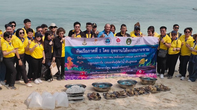 กฟผ. จับมือ ทัพเรือภาคที่ 1 จัดกิจกรรมฟื้นฟูสิ่งแวดล้อมทางทะเล พร้อมสนับสนุนการปรับปรุงซ่อมแซม ท่าเทียบเรือและสะพานทางเดินศึกษาธรรมชาติ เทิดพระเกียรติ รอบเกาะขาม