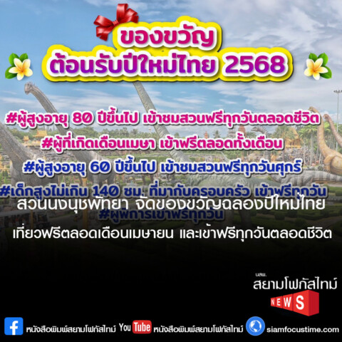 สวนนงนุชพัทยา จัดของขวัญฉลองปีใหม่ไทยเที่ยวฟรีตลอดเดือนเมษายน และเข้าฟรีทุกวันตลอดชีวิต