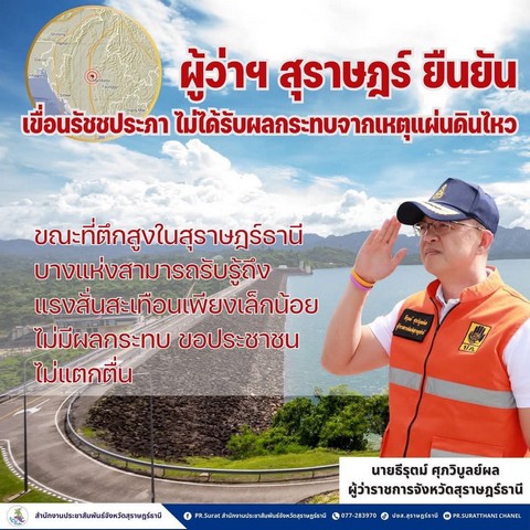 สุราษฎร์ธานี-ผู้ว่าฯ สุราษฎร์ ยืนยัน เขื่อนรัชชประภา ไม่ได้รับผลกระทบจากเหตุแผ่นดินไหว ที่ประเทศเมียนมาร์
