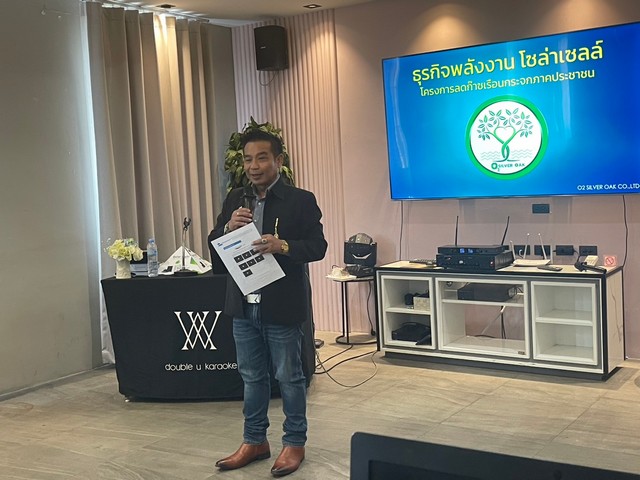 วันที่ 29 มีนาคม 2568 ที่ห้องประชุม VIP 1 โรงแรมเอสอาร์ เรสซิเดนทร์ จ.เพชรบูรณ์ บริษัท O2Silver oakได้เชิญผู้ประกอบการและผู้สนใจเข้าร่วมรับฟังโครงการก๊าซเรือนกระจกภาคประชาชน ธุรกิจพลังงานโซล่าเซลล์ โดยมีนายสงกรานต์ ดัชญาลักษณ์ ประธานกรรมการบริษัท O2Silver oak ได้กล่าวต้อนรับและพูดคุยข้อดีของการใช้พลังงานโซล่าเซลล์เพื่อลดโลกร้อนพร้อมผลตอบแทนของการใช้โซล่าเซลล์ ซึ่งมีผู้ประกอบการและประชาชนผู้สนใจเข้าร่วม 40 คน