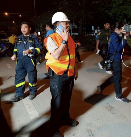 วันอาทิตย์ที่ 30 มีนาคม 68 นาย มงคล​กิตติ์ สุขสินธารานนท์ ที่ปรึกษาหัวหน้าพรรคประชาธิปัตย์ น.ส. ภคอร จันทรักขณา คณะทำงานที่ปรึกษาหัวหน้าพรรคประชาธิปัตย์, ว่าที่ ร.ต.​ธนิต​ศักดิ์​ ดารา​มั่น​ อดีต​ผู้สมัคร​ ส.ส​.แบบ​บัญชี​รายชื่อ​พรรค​ประชาธิปัต​ย์​ พร้อมด้วยทีมงานลงพื้นที่เยี่ยมและให้กำลังใจเจ้าหน้าที่ผู้ปฏิบัติหน้าที่ในการช่วยเหลือผู้ที่ยังรอดชีวิตจากซากตึกอาคารสำนักงานตรวจเงินแผ่นดิน (สตง)​ แห่งใหม่ซึ่งมีความสูงมากกว่า 30 ชั้น เพิ่งอยู่ในระหว่างการก่อสร้างได้เกิดเหตุพังทลายลงมาในระหว่าง วันศุกร์ที่ 28 มีนาคม 68 แผ่นดินไหววัดได้ 8.2 แมกนิจูด (เป็นตึกเดียวในกรุงเทพฯที่ก่อสร้างไม่เสร็จและพังทลายลงมา)​ ตามรายละเอียดที่เป็นข่าวโดยในวันนี้เป็นอีกวันหนึ่งที่ตนเองได้ลงพื้นที่เยี่ยมให้กำลังใจหน่วยกู้ภัยไม่ว่าจะเป็นทหาร, มูลนิธิกู้ภัยต่างๆที่สลับซับผลิตภัณฑ์เข้ามา, เจ้าหน้าที่ตำรวจและเจ้าหน้าที่จากกรุงเทพมหานครที่สลับสับเปลี่ยนมาดูแลความปลอดภัยอำนวยความสะดวกรวมถึงญาติที่เดินทางมาจากต่างจังหวัดเพื่อมาฟังข่าวการกู้ภัยว่าคนที่ตนเองรักนั้นยังหวังว่ายังมีชีพจรหรือมีความหวังหรือปฏิหารในการช่วยเหลือของเจ้าหน้าที่ซึ่งขณะนี้ก็กินเวลา 72 ชั่วโมงพอดี ซึ่งในค่ำคืนนี้และเหมือนหลายค่ำคืนที่ผ่านมาทางคุณ เต้ 007 ได้นำน้ำดื่มและอาหารมามอบเป็นขวัญกำลังใจให้กับผู้ปฏิบัติหน้าที่และญาติที่มารอฟังข่าวจากคนที่ตนเองรักเป็นคืนที่ 3 โดยในค่ำคืนนี้ได้นำไอศครีมกะทิมามอบให้กับทุกคนจำนวน 2 ถัง เพื่อให้เจ้าหน้าที่กู้ภัย ต่างๆได้มีกำลังใจและหายเหนื่อยในช่วงของการพักเปลี่ยนกะในการเข้าไป ตนเองต้องขอขอบคุณนาย มงคล​กิต​ต์​ สุข​สิน​ธารานนท์​ ที่ปรึกษาหัวหน้าพรรคประชาธิปัตย์ ที่ได้เดินทางมาตั้งแต่เกิดเหตุวันแรกและไม่ได้ไปไหน โดยเป็นตัวแทนหัวหน้าพรรคประชาธิปัตย์เข้ามาดูแลและให้กำลังใจพร้อมทั้งนำอาหารและน้ำดื่มเข้ามาปลอบขวัญบำรุงสุขตลอดระยะเวลา 3 วันรวมถึงวันนี้ด้วย ล่าสุดเมื่อเย็นวันนี้ ยังมีผู้สูญหายอีกประมาณ 76 ราย รู้สึกสลดใจและเศร้าใจเป็นอย่างยิ่ง ไม่มีสิ่งใดที่จะมาบอกถึงความสูญเสียและทดแทนสิ่งต่างๆเหล่านี้ได้เพราะเป็นการจากไปแบบไม่มีการได้พูดคุย ติดตามข่าวสารในสื่อทีวีทีไรจะรู้สึกรันทดใจ สิ่งที่พวกเราทำได้ก็คือให้กำลังใจและสนับสนุนเรื่องเสบียงข้าวอาหารให้กับผู้ที่ปฏิบัติหน้าที่ สำหรับยอดผู้เสียชีวิต นับล่าสุดเท่าที่ได้รับทราบคือจำนวน 11 รายและบาดเจ็บรักษาตัวอยู่ที่โรงพยาบาลจ
