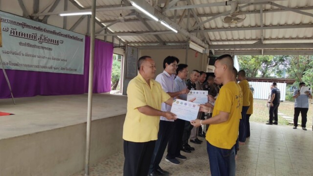 ทั้งนี้ประธานพิธีพร้อมด้วยผู้ทรงเกียรติได้มอบประกาศนียบัตรผ่านการอบรม “ค่ายคืนคนดีสู่สังคม” จำนวน 102 คน เพื่อเป็นขวัญและกำลังใจแก่ผู้ผ่านการอบรมฟื้นฟูสมรรถภาพผู้ติดยาเสพติด สามารถกลับไปใช้ชีวิตในชุมชน และสังคมได้อย่างปกติสุข ไม่กลับไปเสพยาเสพติดช้ำ