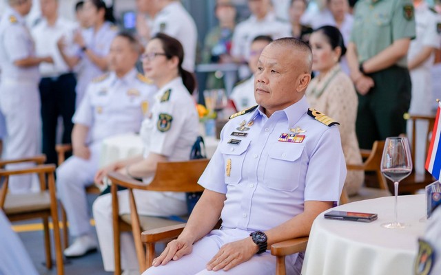 พร้อมด้วยคณะผู้บังคับบัญชา และกำลังพลหมู่เรือฝึกผสม Blue Strike 2025 รวมทั้งนักเรียนนายเรือ ได้เข้าร่วมงานเลี้ยงรับรองบนเรือรบจีน บริเวณท่าเทียบเรือ Maxie เมืองจ้านเจียง สาธารณรัฐประชาชนจีน เพื่อเป็นการเชื่อมความสัมพันธ์ไมตรี เสริมสร้างความไว้เนื้อเชื่อใจ และพัฒนาความร่วมมือในการรักษาสันติภาพและความมั่นคงในภูมิภาค
