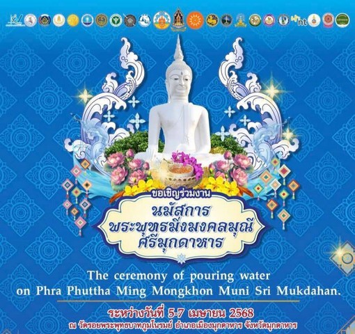 นายนิกูล ธนวรเมธ รองผู้ว่าราชการจังหวัดมุกดาหาร เปิดเผยว่า จังหวัดหวัดมุกดาหาร ร่วมกับคณะสงฆ์จังหวัดมุกดาหาร ส่วนราชการ หน่วยงานทุกภาคส่วน กําหนดจัดงานนมัสการพระพุทธมิ่งมงคลมุณีศรีมุกดาหาร สืบสานบุญประเพณีสงกรานต์ ระหว่างวันที่ 5 – 7 เมษายน นี้ ตั้งแต่เวลา 09.00 น. เป็นต้นไป ณ วัดรอยพระพุทธบาทภุมโนรมย์ ตําบลนาสีนวน อําเภอเมืองมุกดาหาร จังหวัดมุกดาหาร โดยมีวัตถุประสงค์เพื่อเฉลิมพระเกียรติแด่พระบาทสมเก็จพระเจ้าอยู่หัว และน้อมสํานึกในพระมหา กรุณาธิคุณของพระบาทสมเด็จพระเจ้าอยู่หัว ส่งเสริมและสืบสานวัฒนธรรมประเพณีอันดีงามให้คงอยู่