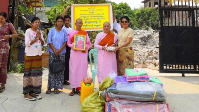 ความช่วยเหลือยังคงดำเนินต่อไปอย่างไม่หยุดยั้ง โดยในวันที่ 4 เมษายน 2568 Ms.Swe Tha Zin ผู้แทนคณะศิษยานุศิษย์วัดพระธรรมกายชาวเมียนมาในเมืองมัณฑะเลย์ ได้นำปัจจัยที่ส่งมาจากวัดพระธรรมกายและมูลนิธิธรรมกาย น้อมถวายเพื่อช่วยเหลือพระภิกษุสามเณรในวัดเมี๊ยเจ้า จำนวน 5 ล้านจัต วัดมหาวิซิดายง จำนวน 5 แสนจัต และคณะแม่ชีวัดยะดะนะ เตงกี จำนวน 5 แสนจัต พร้อมทั้งได้ถวายสิ่งของเครื่องใช้ที่จำเป็น อาทิ มุ้งกันยุงและเครื่องนอน แด่คณะสงฆ์ที่ประสบภัย ซึ่งวัดและโรงเรียนปริยัติธรรมบางแห่งได้รับความเสียหายจนไม่สามารถพักอาศัยและประกอบศาสนกิจได้ตามปกติ